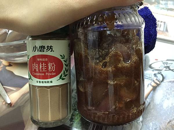 因為我非常愛肉桂粉,所以我也做了肉桂口味,但不要太多,一個大罐約加茶一匙就已經夠了,趁熱時與果講攪勻。