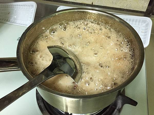 所以我開中大火一直攪一直攪,此階段要一直顧爐,因為燒焦是很容易發生的事。