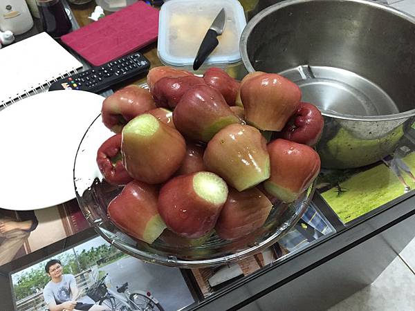 然後一邊收看我最愛的日本節目(是的我還是忍不住加裝了第4台了),一邊將蓮霧切成小塊,一直切一直切,