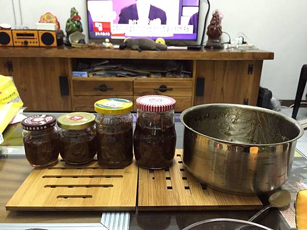 此處可看到,當初的大鍋(1.6kg),在第一日煮沸後已經只剩下一只玻璃大碗的份量,