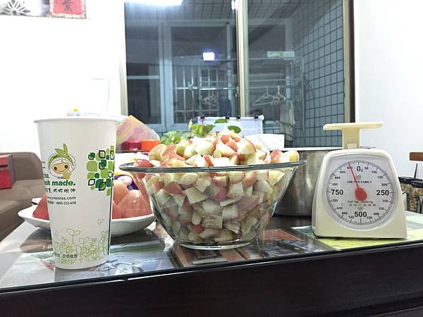 那個玻璃晚中的碎果肉快要比鮮茶道高了!一邊看電視一邊作,倒是不會覺得特別累。